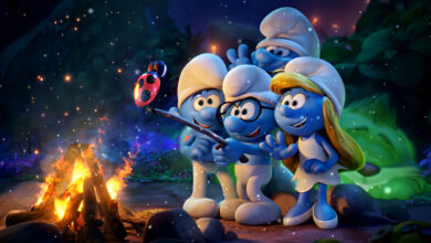 🎬 Dive into the magical world of the Smurfs as they gather around the campfire and capture a heartwarming selfie…