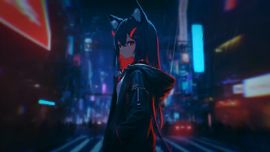 Dark Anime Girl in Neon City 🌃 | FREE | 4K Live Wallpaper – Screensaver for PC & Phone